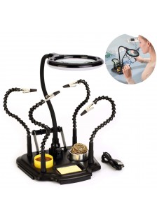 Troisième main avec grande loupe en verre, hauteur ajustable et éclairage LED.