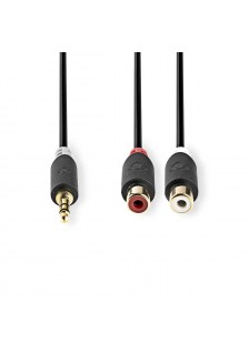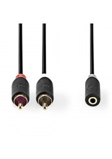 Câble audio stéréo 2x RCA Male | 3.5 mm Femelle | Plaqué or | 0.20 mètre | Rond | Anthracite