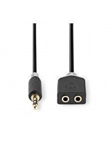 Câble audio stéréo 3.5 mm Mâle | 2x 3.5 mm Femelle | Plaqué or | 0.20 mètre | Rond | Anthracite