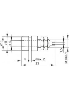 Douille avec tête isolante et anneau pour l'installation dans le châssis de l'appareil et les panneaux de commande jusqu'à 2 mm d'épaisseur de paroi.