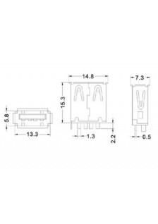 Prise USB 2 traversante pour montage sur châssis, fournie avec vis de fixation.