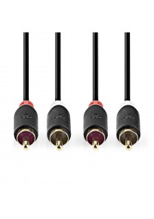 Cordon audio/stéréo 2 x RCA mâle | 2 x RCA mâle | Plaqué or | 3.00 mètres | Rond | Anthracite