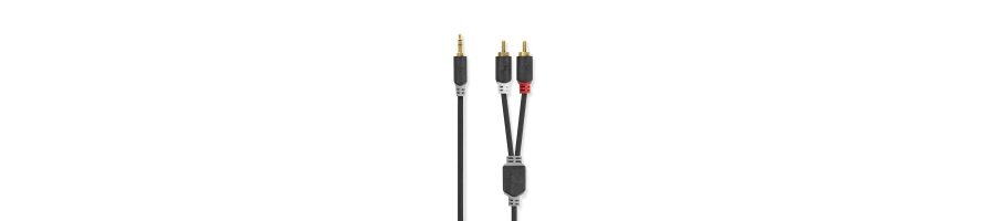 Câble audio stéréo - 3.5 mm mâle | 2 x RCA mâle | Plaqué or | 2.00 mètres | Rond | Anthracite