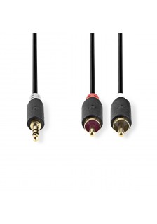 Câble audio stéréo - 3.5 mm mâle | 2 x RCA mâle | Plaqué or | 2.00 mètres | Rond | Anthracite
