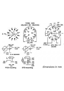 Commutateur rotatif 1 circuit / 12 positions, cosses à souder.