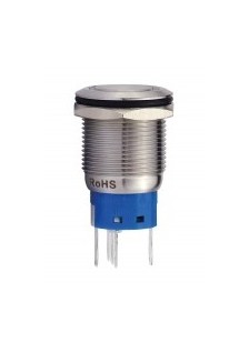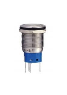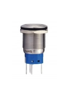 Bouton-poussoir rond en acier inoxydable SPDT 1NO 1NC - anneau bleu - Ø 16mm