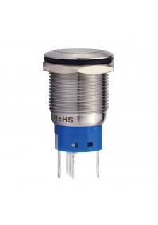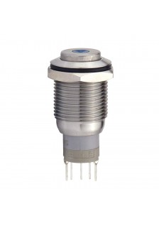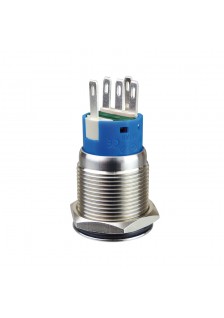 Interrupteur Ø 16 mm en acier inoxydable - anneau bleu - LED 4/12 Volts