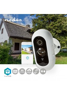 Wi-Fi | Full HD 1080p | IP65 | Durée de vie max. d'une pile: 6 mois | micro SD (non inclus) / Stockage dans le Cloud (facultatif) | 5 V DC | Avec capteur de mouvement | Vision nocturne | Blanc