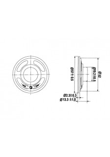 Châssis rond 74 mm. Diam. Découpe 50 mm. Profondeur d'encastrement 18 mm. Lentille de répartition du son.