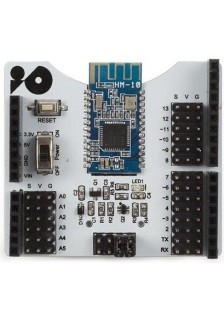 Le shield utilise un module HM-10 avec une puce Bluetooth v4.0 BLE Texas Instruments® CC2541, entièrement compatible avec l'Arduino® Uno.