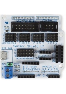 Ce sensor-shield est une carte économique adaptée pour connecter des capteurs et des appareils externes à votre Arduino® à l'aide de cavaliers.