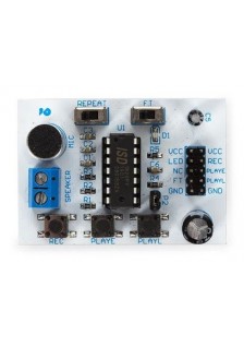 Ce module d'enregistrement et de lecture audio est conçu pour être intégré dans des projets électroniques. Ce module peut enregistrer des sons ou de la voix pendant une durée allant jusqu'à 20 secondes grâce à son microphone intégré. Le son enregistré est stocké dans la mémoire flash, le préservant même lorsque l'alimentation est coupée. Avec le module, vous pouvez facilement réaliser des enregistrements et les lire en utilisant les boutons de commande. De plus, il peut être connecté à un microcontrôleur externe pour un contrôle plus avancé.