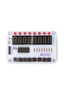Il dispose de huit petits écrans pour afficher des chiffres et des lettres, de huit LEDs rouges et de huit boutons-poussoirs.