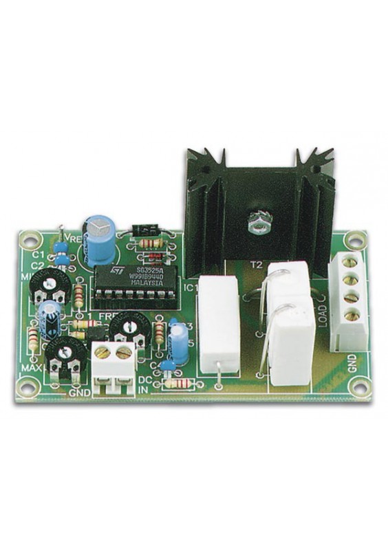 Ce circuit est idéal pour le réglage précis d'un moteur alimenté par un courant continu, de la puissance lumineuse d'une lampe, d'une petite résistance de chauffage et de toute une série d'applications similaires. En effet, ce circuit convertit une tension continue en une série d'impulsions, de sorte que la valeur de la tension continue est directement proportionnelle à la durée de l'impulsion. Un tel circuit comporte l'avantage non négligeable de n'entraîner pratiquement aucune perte de puissance dans le circuit de réglage. Protection contre la surcharge et les courts-circuits.