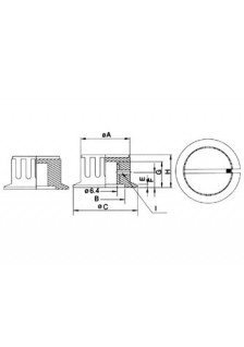 Bouton de potentiomètre noir avec point blanc - 35.7 mm / 6 mm