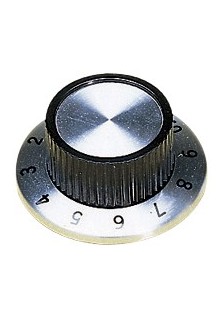 Bouton calibré (numéroté) en plastique avec garniture en métal.