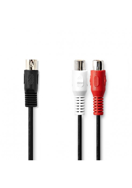Câble audio DIN 5-Pin mâle | 2x RCA femelle | Plaqué nickel | 0.20 mètre | Rond | PVC | Noir