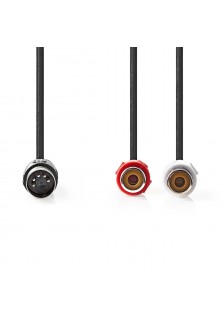 Câble audio DIN 5-Pin mâle | 2x RCA femelle | Plaqué nickel | 0.20 mètre | Rond | PVC | Noir