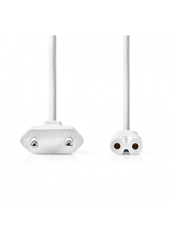 Câble d'alimentation euro mâle | IEC-320-C7 | Droit | Droit | Plaqué nickel | 5.00 mètres | Plat | PVC | Blanc