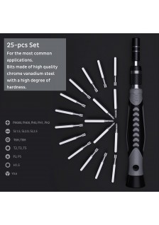 Ce jeu de tournevis de précision est un ensemble d'outils de haute qualité qui se compose de 25 pièces.
