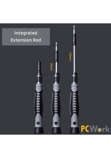 Cet ensemble est idéal pour réparer les smartphones et les ordinateurs. Il comprend une vaste gamme d’accessoires pour vous aider à desserrer et à fixer différents types de vis. Le porte-main aimanté garantit que les embouts sont maintenus en toute sécurité et ne se perdent pas. Il dispose également d’une tige d’extension et d’un capuchon rotatif à 360° qui vous permettent de l’utiliser confortablement.