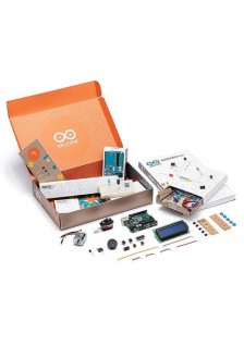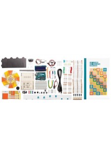 Ce kit comprend: 1 x Arduino Projects Book (français, 170 pages); 1 x Arduino UNO rev.3; 1 x câble USB; 1 x breadboard; 1 x base de bois; 1 x connecteur de pile de 9 V; 70 x câble dur; 2 x câble souple; 6 x photorésistance; 3 x trimmer de d10 kohm; 10 x bouton poussoir; 1 x capteur de température; 1 x capteur d'inclinaison; 1 x LCD (16x2i); 1 x LED (blanc); 1 x LED (RVB); 8 x LED (rouge); 8 x LED (vert); 8 x LED (jaune); 3 x LED (bleu); 1 x moteur CC 6/9 V; 1 x servomoteur; 1 x piézoélectrique; 1 x pont en H; 2 x photocoupleur; 5 x BC547; 2 x IRF520; 5 x 100 condensateur nF; 3 x condensateur 100 uF; 5 x condensateur 100 pF; 5 x diode 1N4007; 3 x gelée transparente (rouge, vert, bleu); 1 x connecteur de flexible mâle (40x1); 20 résistance de 220 ohm; 5 x résistance de 560 ohm; 5 x résitance de 1 kohm; 5 x résistance de 4,7 kohm; 10 x résistance de 10 kohm; 5 x résistance de 1 Mohm; 5 x résistance de 10 Mohm. 5 x BC547; 2 x IRF520; 5 x 100 condensateur nF; 3 x condensateur 100 uF; 5 x condensateur 100 pF; 5 x diode 1N4007; 3 x gelée transparente (rouge, vert, bleu); 1 x connecteur de flexible mâle (40x1); 20 résistance de 220 ohm; 5 x résistance de 560 ohm; 5 x résistance de 1 kohm; 5 x résistance de 4,7 kohm; 10 x résistance de 10 kohm; 5 x résistance de 1 Mohm; 5 x résistance de 10 Mohm.