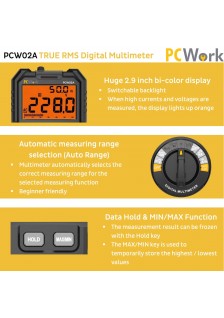 Le multimètre numérique PCW02A True RMS est un appareil polyvalent et fiable, parfait pour les professionnels et les bricoleurs ambitieux,