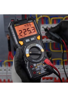 Il dispose d’une lampe de travail à LED et d’un écran LCD de 2,9 pouces avec rétroéclairage bicolore et fonction bargraph, l’écran s’allume en orange pour avertir l’utilisateur s’il mesure des tensions ou des courants élevés.