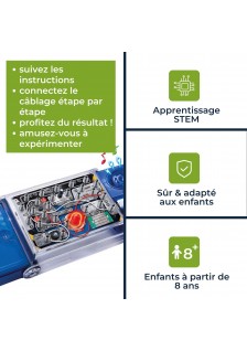 Kit de circuits électroniques prêt à l'emploi, contenant 8 expériences, adapté aux enfants de 8 ans et plus.