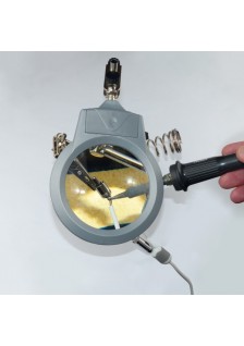 Troisième main avec grande loupe en verre, hauteur ajustable et éclairage LED.